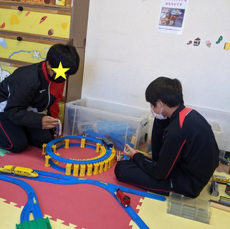 1~3歳の👦も自然に中学生に交じり、電車を走らせていました。時々お兄ちゃんの顔をちょっと見ながら。